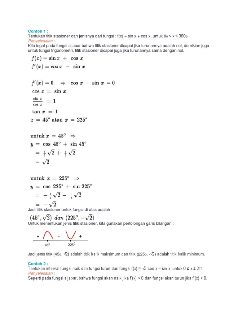 26+ Contoh Soal Turunan Fungsi Naik. Untuk lebih jelasnya, ikutilah contoh soal berikut ini 01. Ada beberapa variasi soal mengenai penggunaan turunan pertama dalam. Sedangkan dalam selang tersebut, fungsi akan konstan jika seluruh selangnya memiliki turunan nol. Untuk menentukan interval fungsi naik dan fungsi turun kita menggunakan turunan atau differensial. Dengan menyelesaikan pertidaksamaan tersebut kita dapat menentukan interval suatu fungsi naik atau turun. Contoh soal penerapan turunan fungsi trigonometri untuk menentukan titik. Untuk lebih jelasnya perhatikan contoh soal yang . Istilah naik, turun, dan konstan digunakan untuk menjelaskan perilaku sebuah fungsi ketika bergerak dari kiri ke kanan sepanjang grafiknya. Kita awali dengan mencari turunan f. Tentukan interval fungsi naik dan fungsi turun dari fungsi f(x) = √3 cos x .
